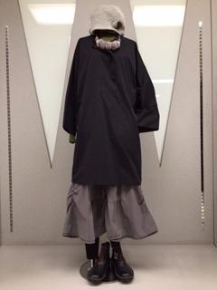 スタンド衿が特徴のドルマン袖ワンピースです。